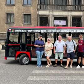 Begib dich auf eine Zeitreise und entdecke einen der faszinierendsten Stadtteile Krakaus – Nowa Huta, der als sozialistische Modellstadt konzipiert wurde. Fahre bequem mit einem Golfwagen durch breite Alleen, über monumentale Plätze und vorbei an beeindruckenden Gebäuden, die noch heute durch ihre Größe und Architektur beeindrucken. Hör dir Geschichten, Anekdoten und Kuriositäten aus der Welt des Sozialismus an.