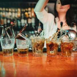 Trinkspiele in einer lokalen Bar, lustige Gruppenherausforderungen & Shots