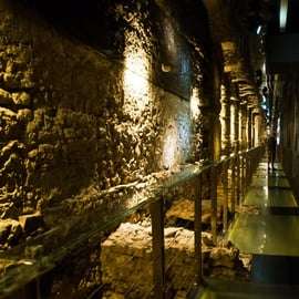 Nachdem Sie gesehen und gehört haben, wie der moderne Hauptplatz von Krakau aussieht, wagen Sie sich ein paar Meter unter der Erde die Museumstreppe hinunter und treten Sie in die Vergangenheit ein. Finden Sie sich auf der gleichen Ebene wie die gepflasterten Straßen des alten Krakaus.