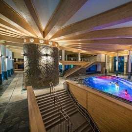 Nach diesem aufregenden Tag auf den Skiern erwartet Sie wohlverdiente Entspannung in den Thermen von Chochołów. Tauchen Sie ein in das wohltuende, 30 bis 38 Grad warme Wasser der Innen- und Außenbecken. Lassen Sie sich von sanften Hydromassagen verwöhnen oder entspannen Sie in der Sauna. Nach einigen Stunden puren Wohlbefindens bringt Sie Ihr Fahrer sicher und bequem zurück zu Ihrem Hotel in Krakau.