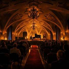 Laat je betoveren door prachtige muziek voor solopiano in een buitengewoon interieur met fenomenale akoestiek. De bijzondere avond wordt gevuld met een magische setting bij kaarslicht, weerspiegeld in verguldsel en marmer.