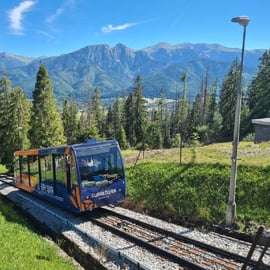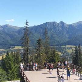Tijdens de tour maak je ook een schilderachtige rit met de kabelbaan naar de Gubałówka-heuvel, waar een adembenemend panoramisch uitzicht over de Tatra en de Zakopane-vallei op je wacht.